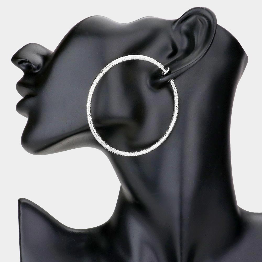 3.2 Inch Textured Metal Hoop Clip On Earrings