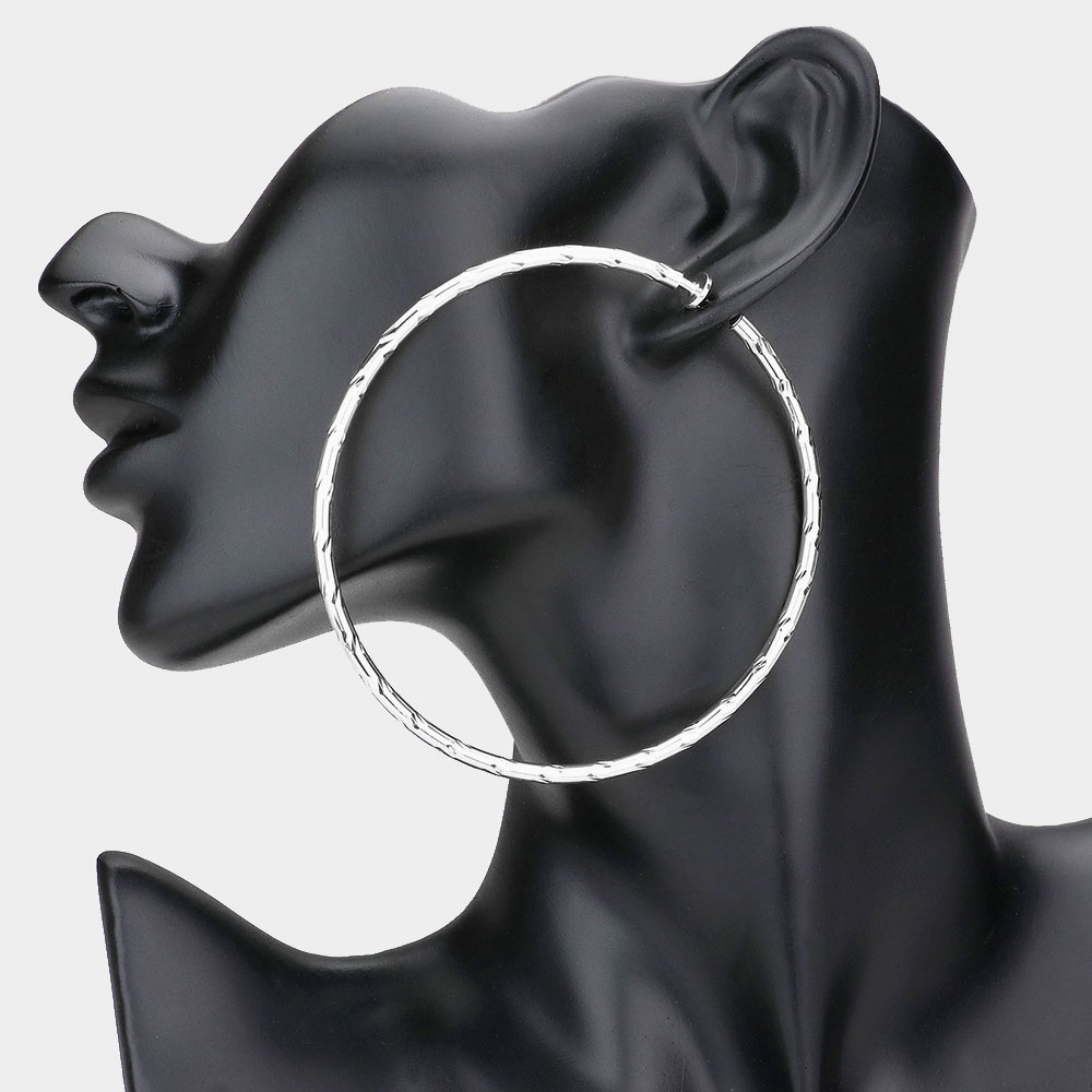3.2 Inch Textured Metal Clip On Hoop Earrings