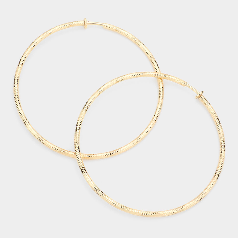 3.2 Inch Textured Metal Clip On Hoop Earrings