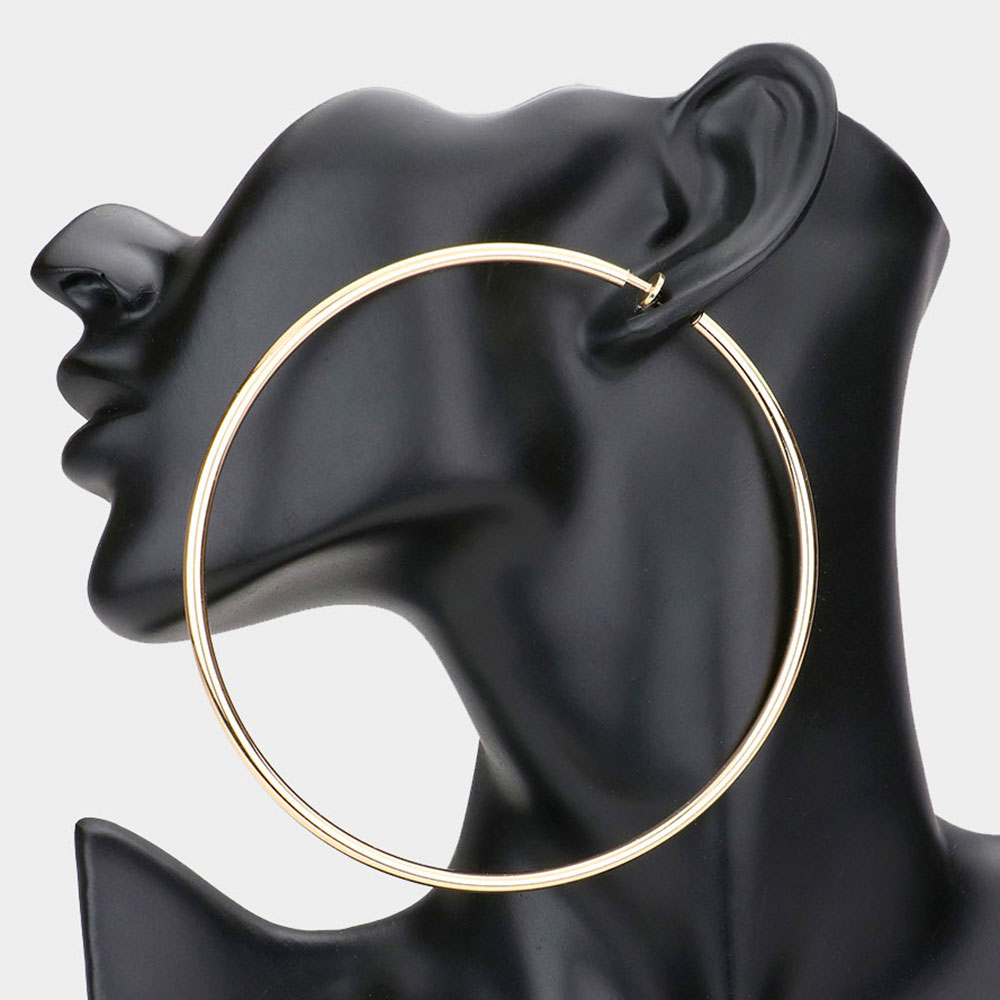 4 Inch Extra Large Metal Hoop Clip On Earrings