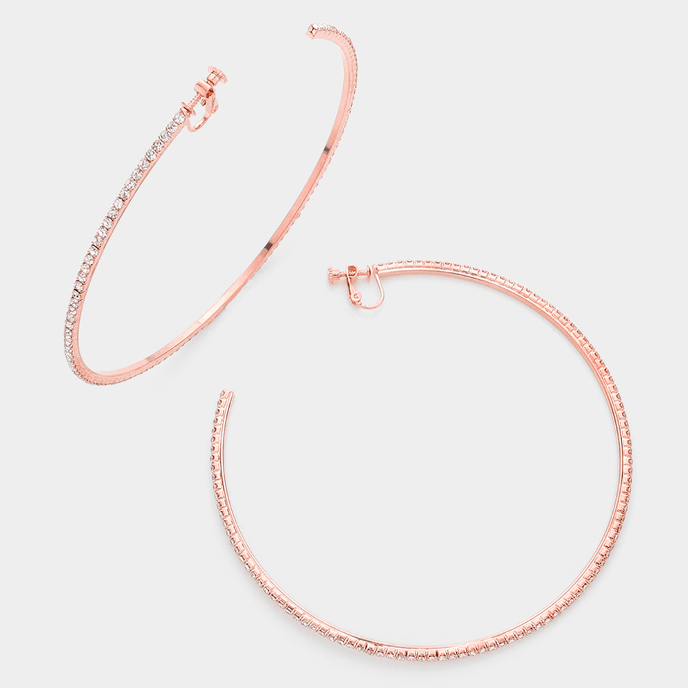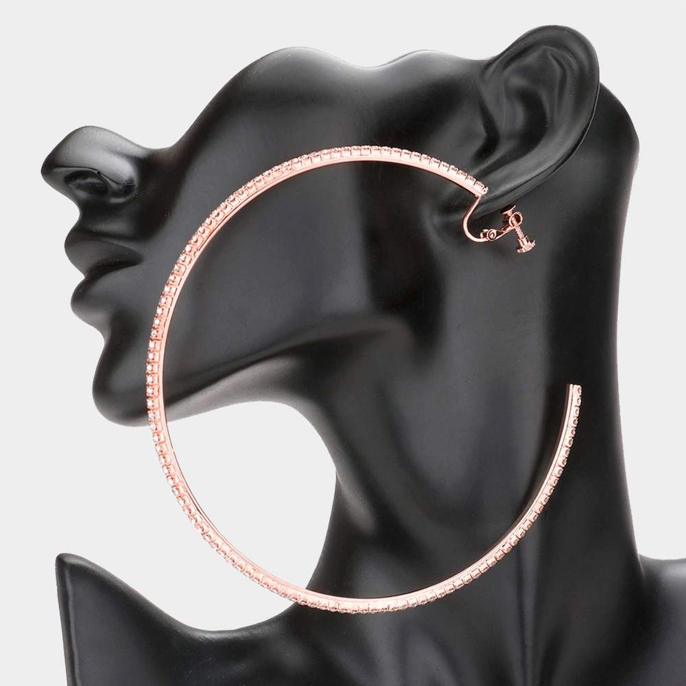 4 inch Rhinestone Hoop Clip on Earrings