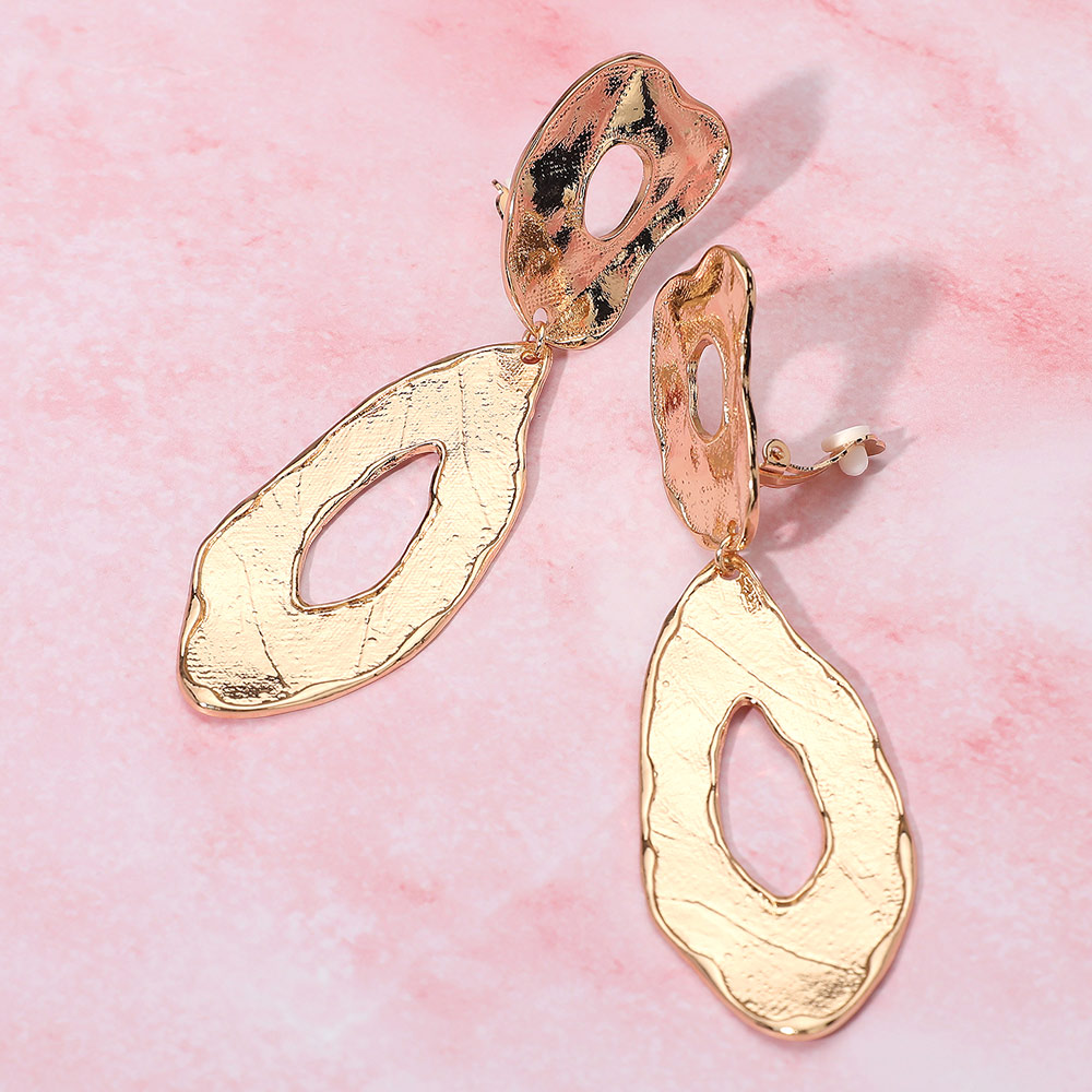 Details • Size : 1.2" X 4" • Clip On • Modern clip-on earrings with an abstract open-shape design and hammered texture for a bold, artistic statement. Lightweight and eye-catching, these earrings elevate any outfit with contemporary elegance, perfect for both day and night wear. • Lead and Nickel Compliant