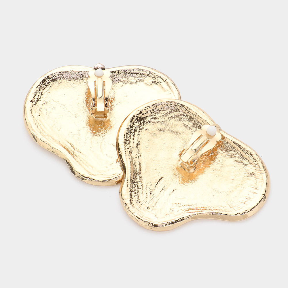 • Make a bold statement with these abstract-shaped clip-on earrings featuring a rich textured finish. Lightweight and stylish, they offer effortless elegance and comfort without the need for pierced ears.