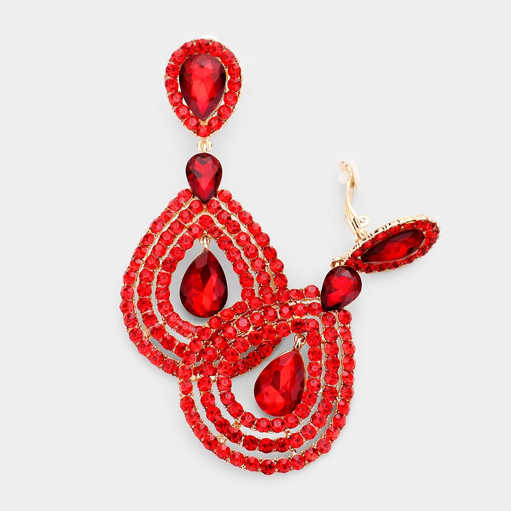 Crystal Pave Trimmed Teardrop Clip On Earrings