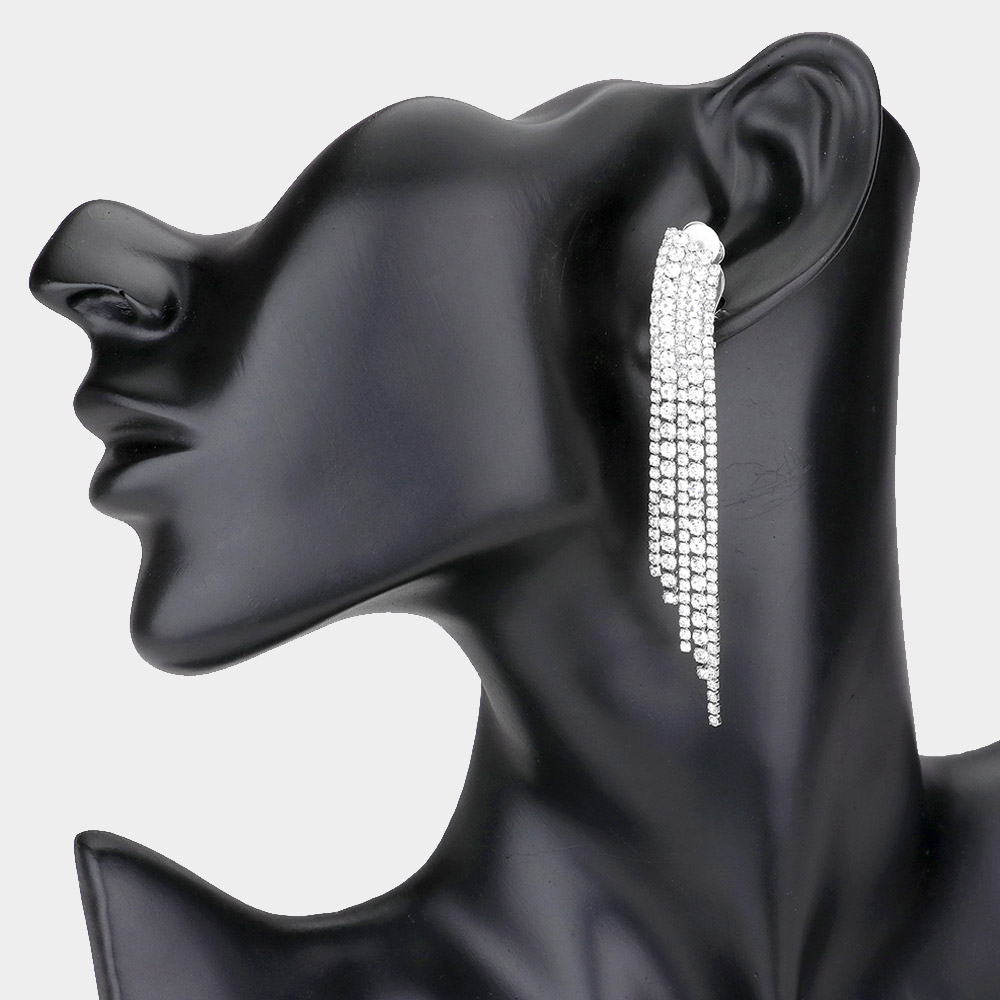 Crystal Rhinestone Pave Fringe Clip on Evening Earrings