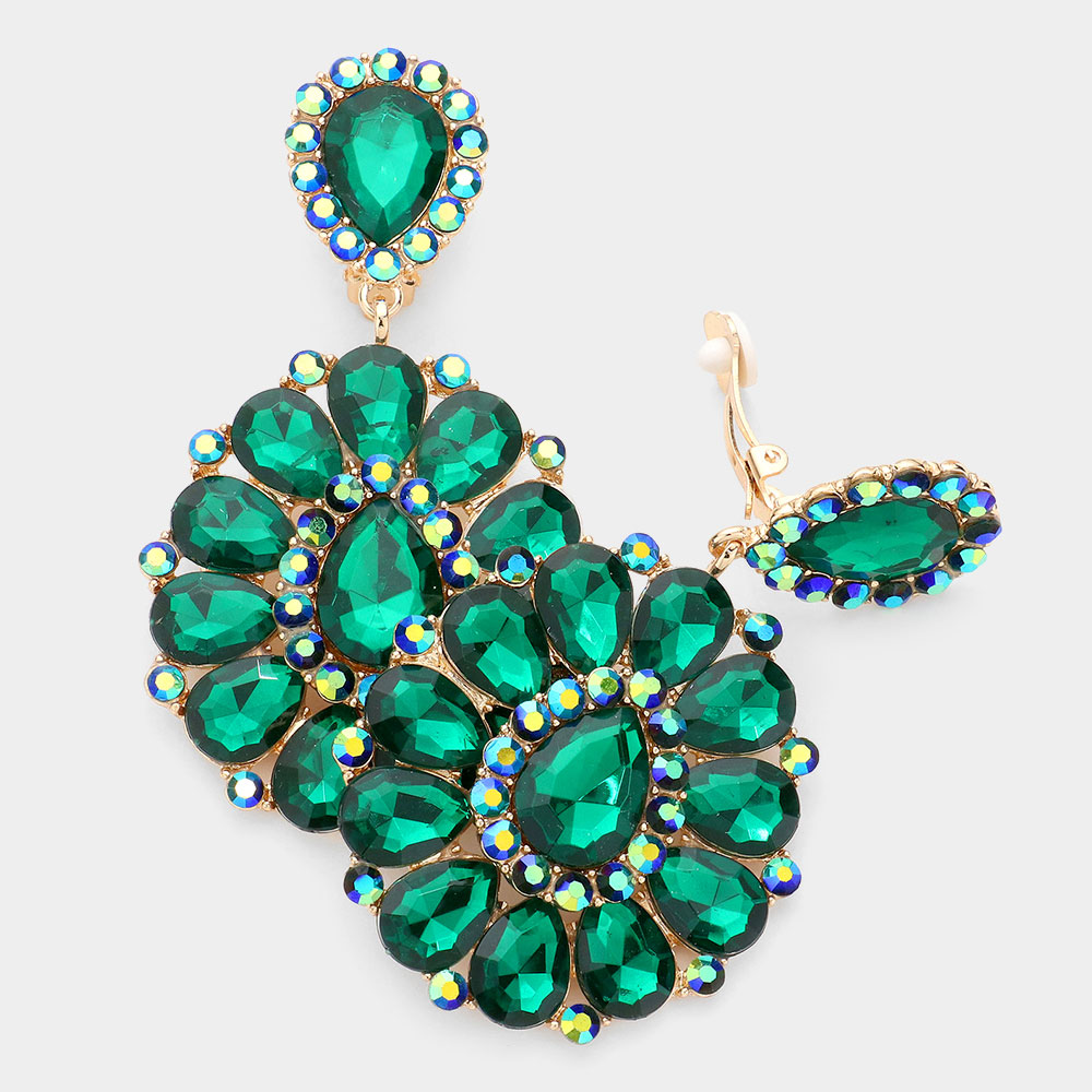 Crystal Teardrop Cluster Statement Clip on Earrings