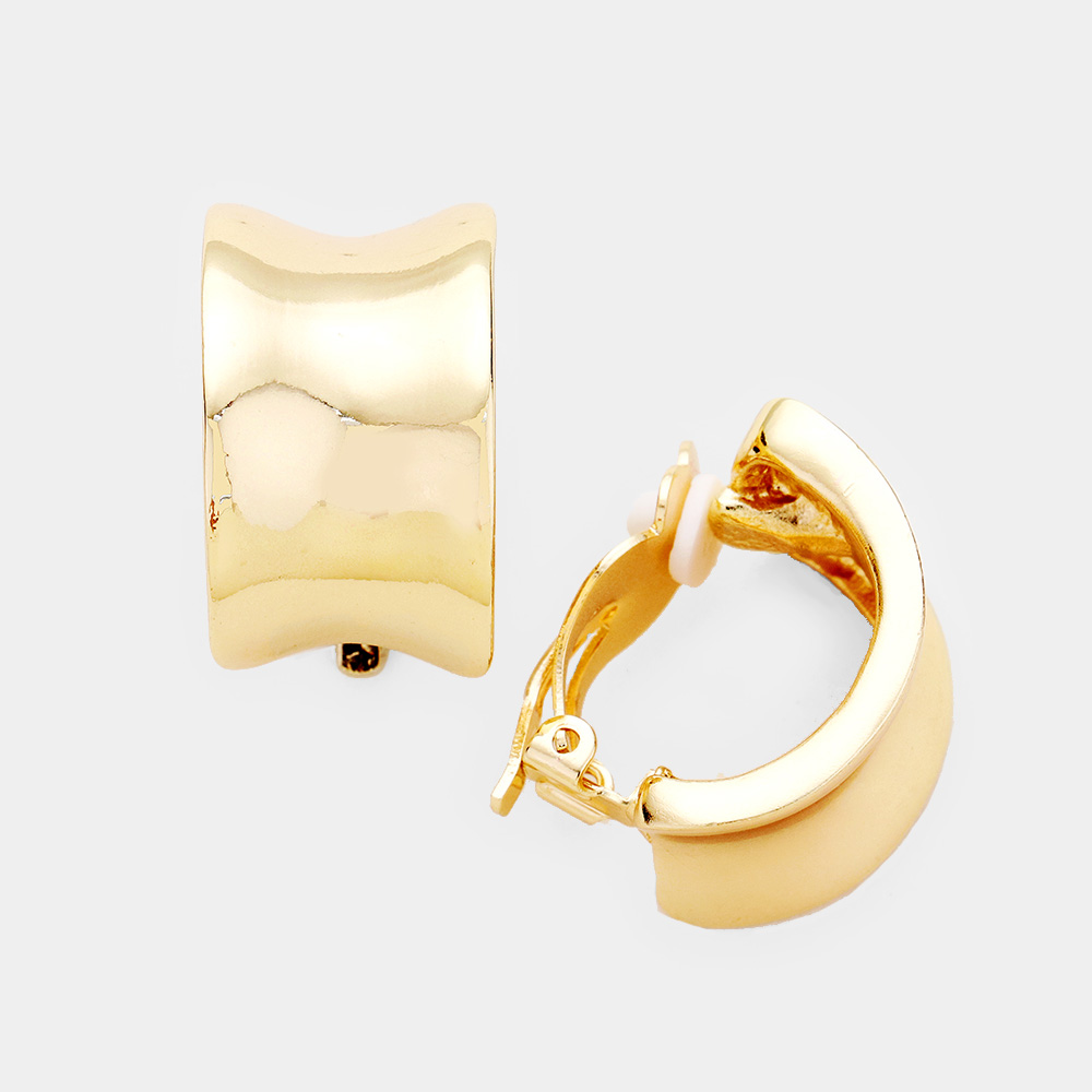 Details • Size : 0.7" X 1.2" • Clip On • These elegant clip-on hoop earrings feature a smooth curved shape with a high-shine finish. Designed for non-pierced ears, they offer a timeless, minimalist style that complements both everyday and formal looks effortlessly. • Lead and Nickel Compliant