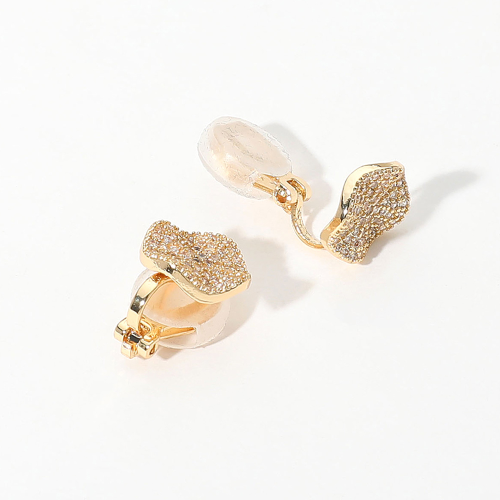 CZ Stone Paved Wavy Disc Evening Clip On Earrings
