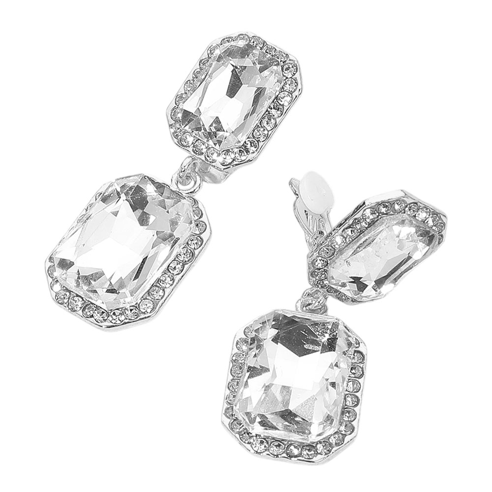 Elegant Rectangle Crystal Drop Dangle Evening Clip On Earrings