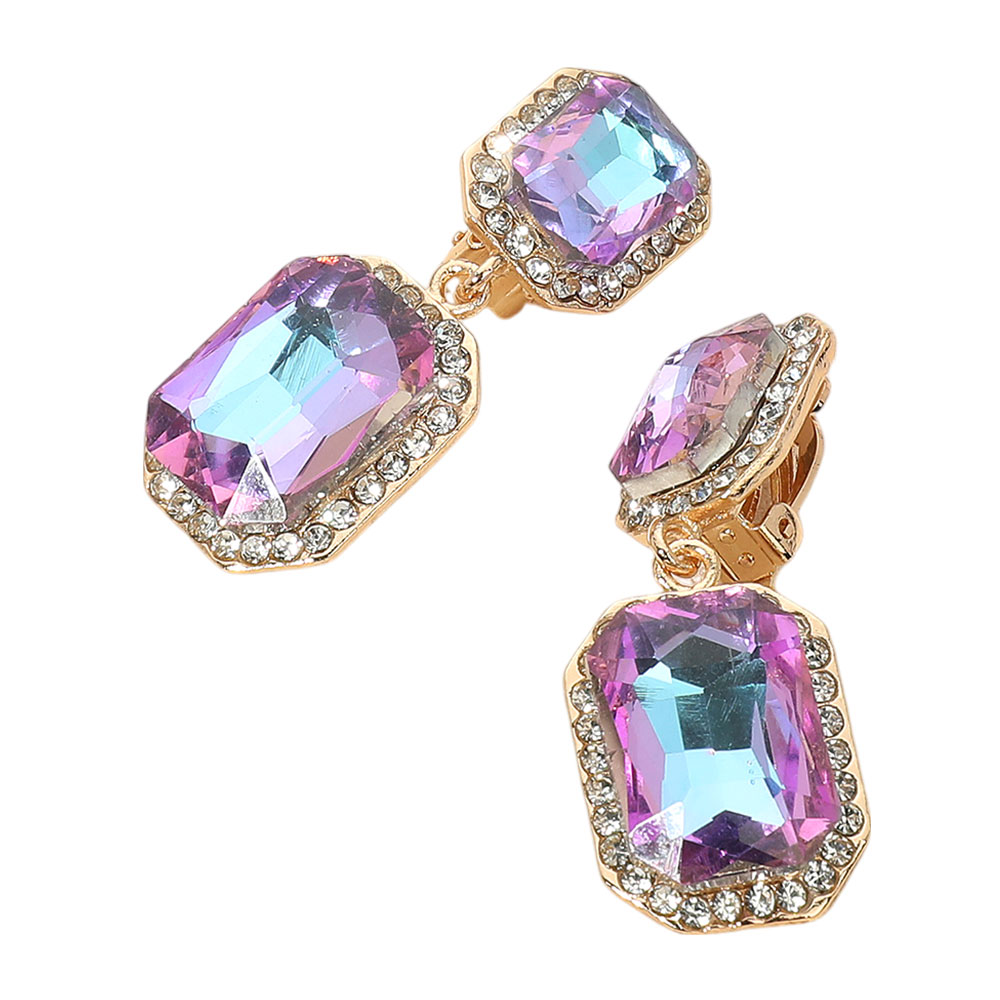 Elegant Rectangle Crystal Drop Dangle Evening Clip On Earrings