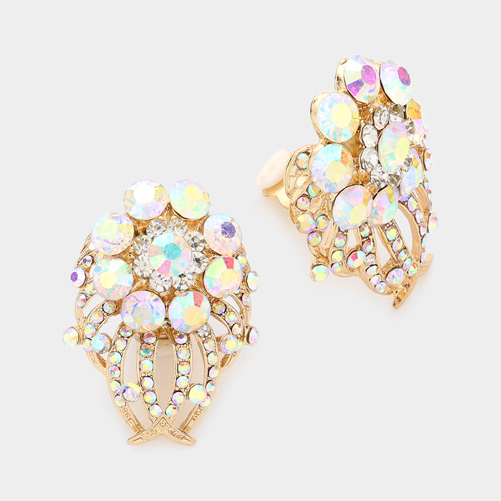 Round Stone Accented Rhinesone Paved Flower Pointed Hair Comb