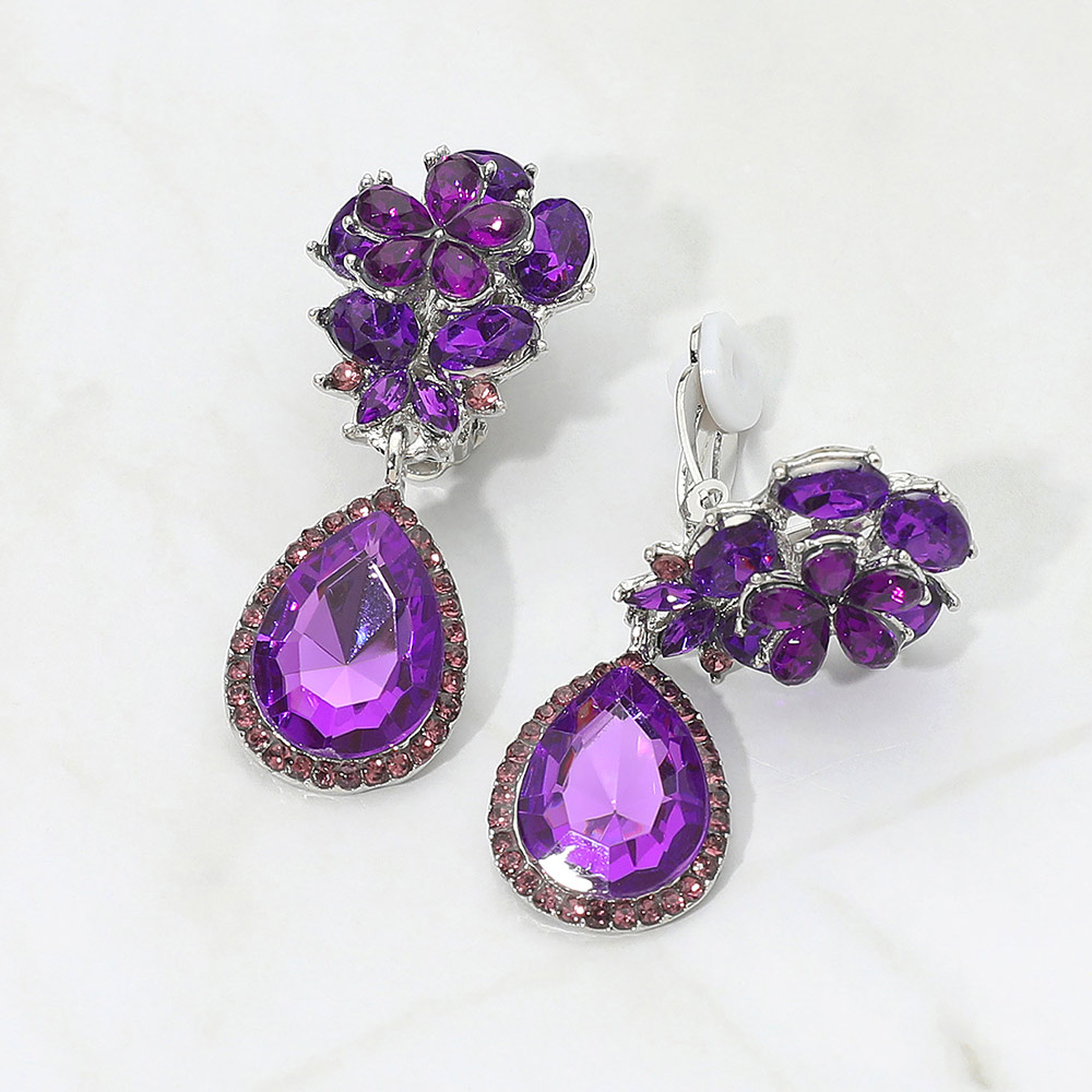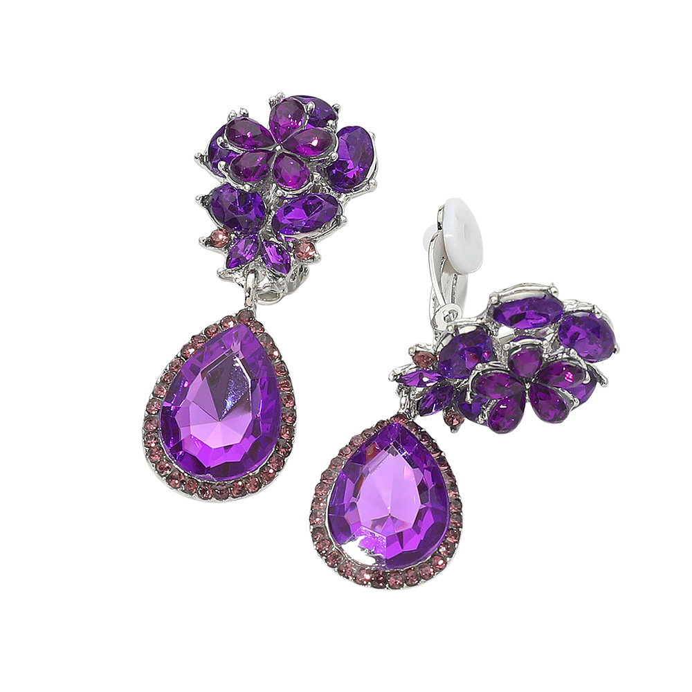 Flower Glass Crystal Teardrop Dangle Clip On Earrings Flower Glass Crystal Teardrop Dangle Clip On Earrings