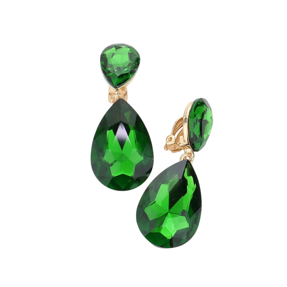 Glass Crystal Double Teardrop Clip on Evening Earrings
