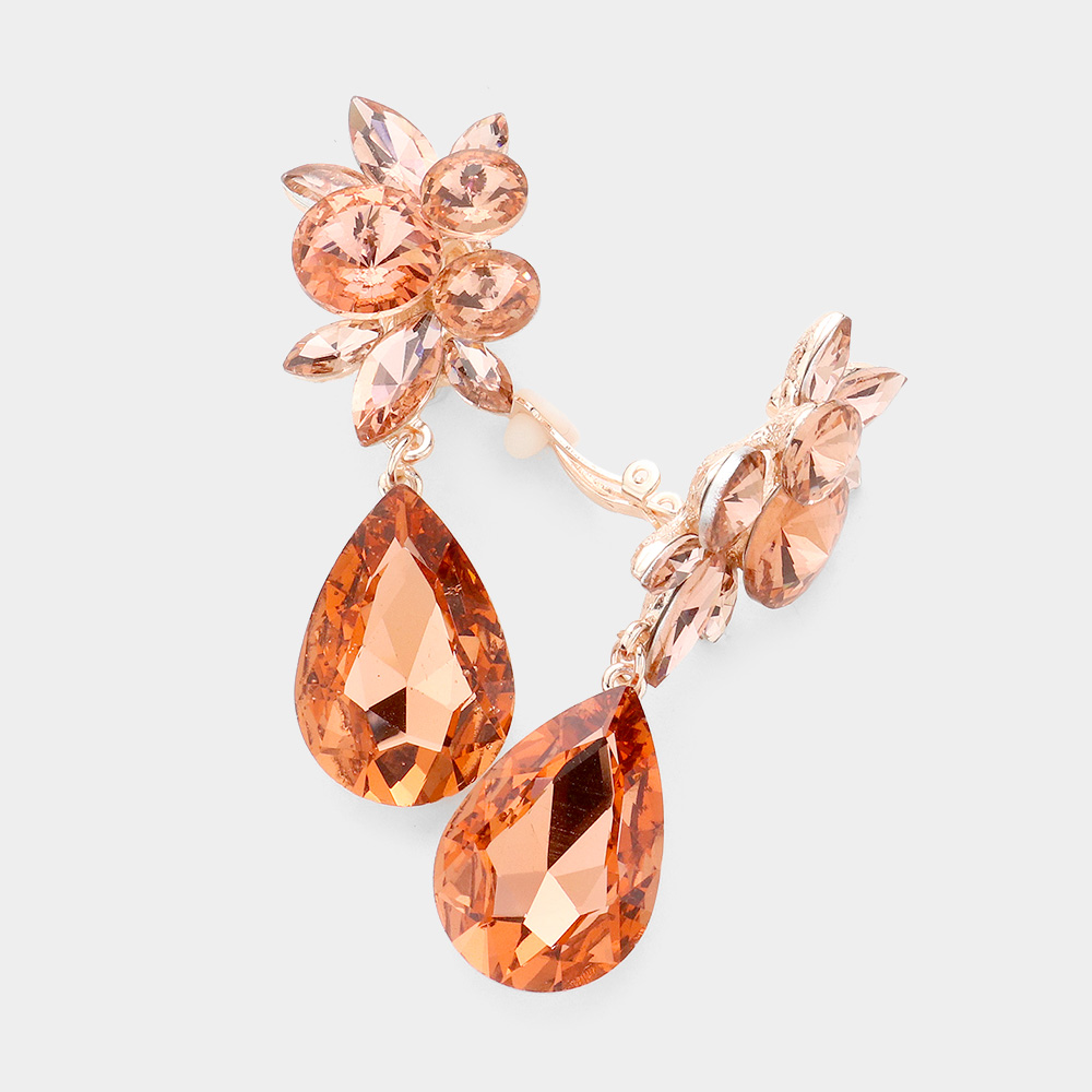 Oval Marquise Stone Cluster Dangle Evening Earrings