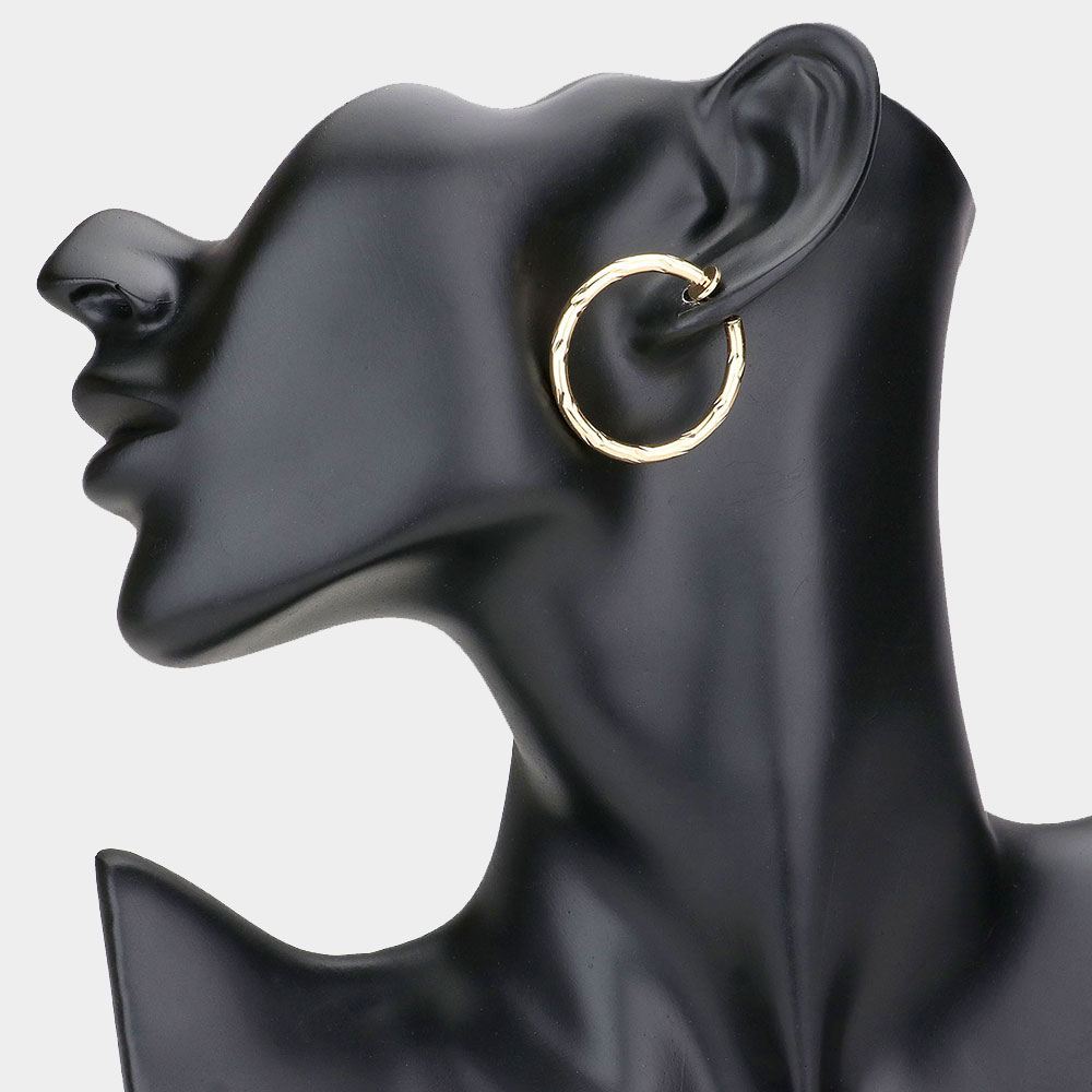 3.2 Inch Textured Metal Clip On Hoop Earrings