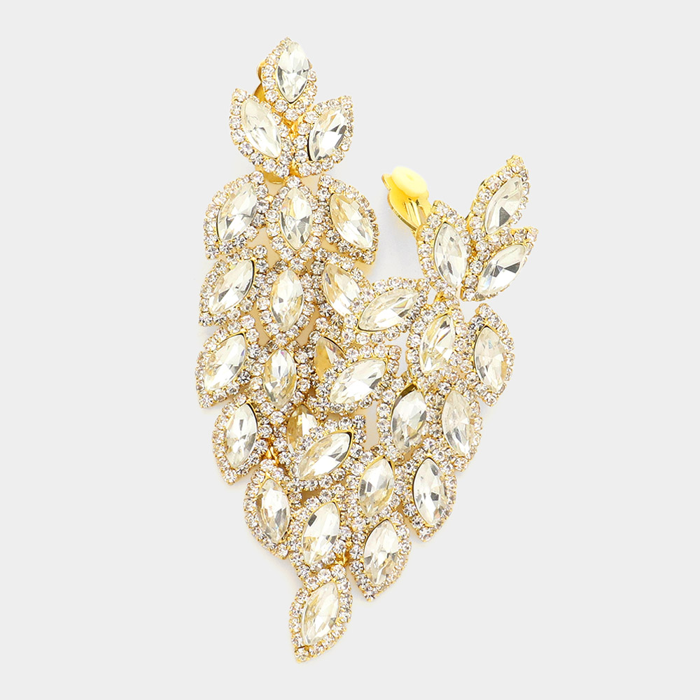 Crystal Stone Leaf Cluster Marquise Evening Earrings