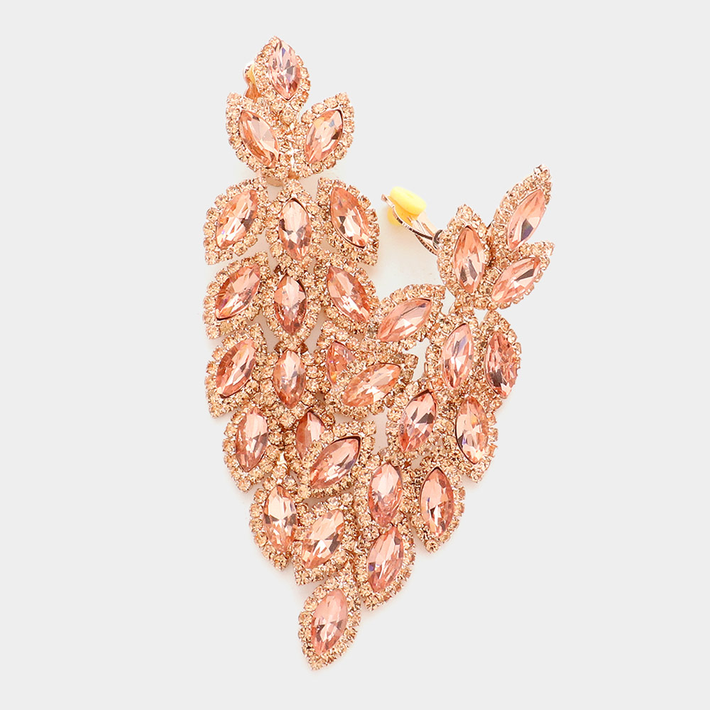 Marquise Crystal Cluster Vine Clip On Evening Earrings