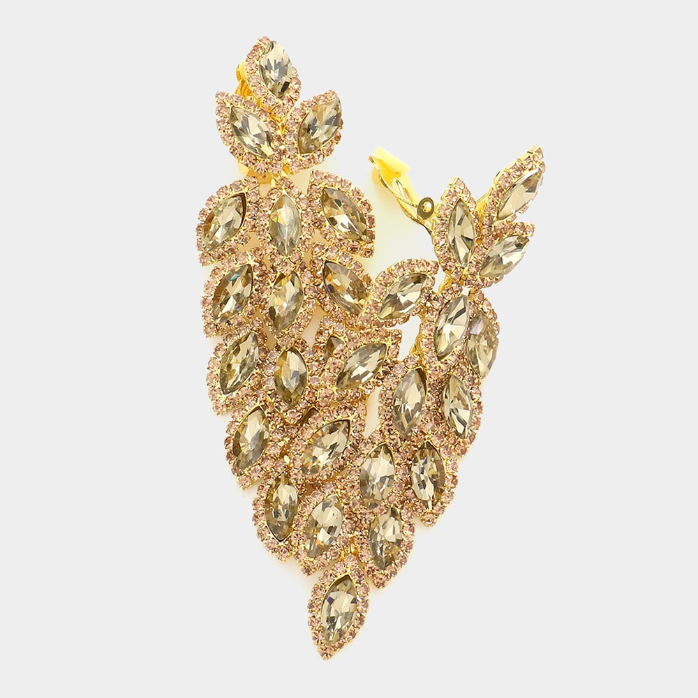 Marquise Crystal Cluster Vine Clip On Evening Earrings