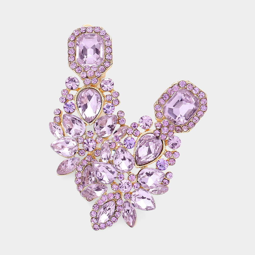 • Add instant glamour with these floral-inspired clip-on earrings, adorned with a dazzling arrangement of faceted stones in layered petal shapes. Designed to catch the light from every angle, they bring elegance and bold sophistication to special occasions.