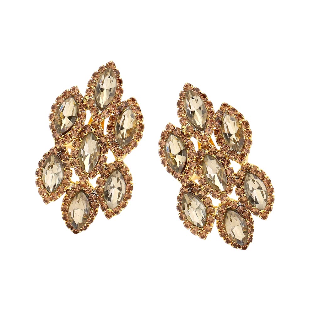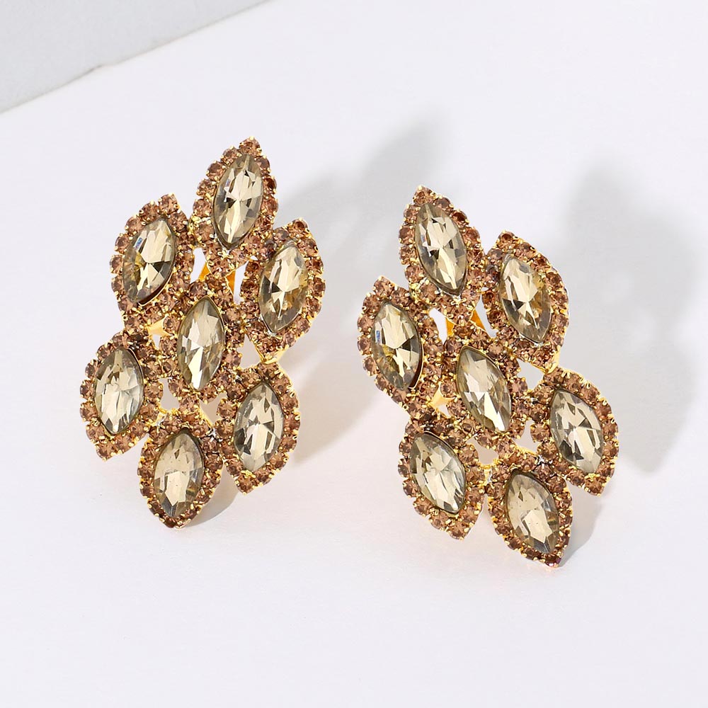 Rhinestone Trim Oval Stone Stud Evening Earrings