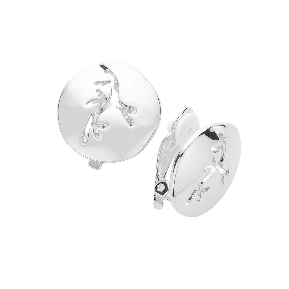 White Gold Dipped CZ Stone Paved Round Triangle Stud Earrings
