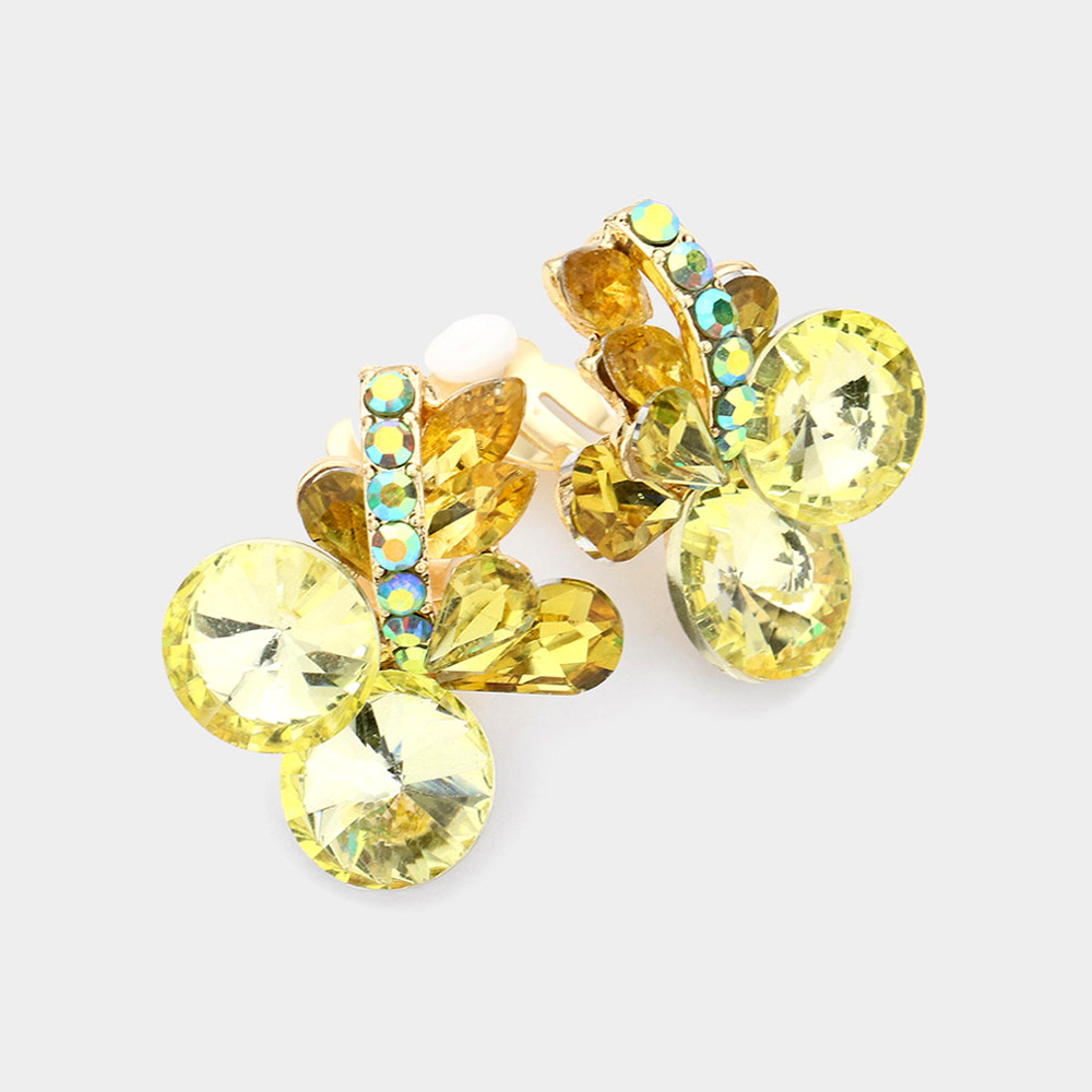Multi Stone Cluster Clip On Evening Earrings
