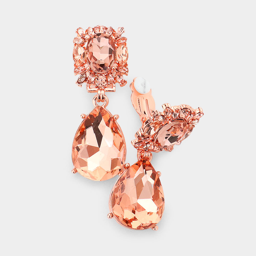 Multi Stone Cluster Teardrop Link Dangle Evening Clip On Earrings