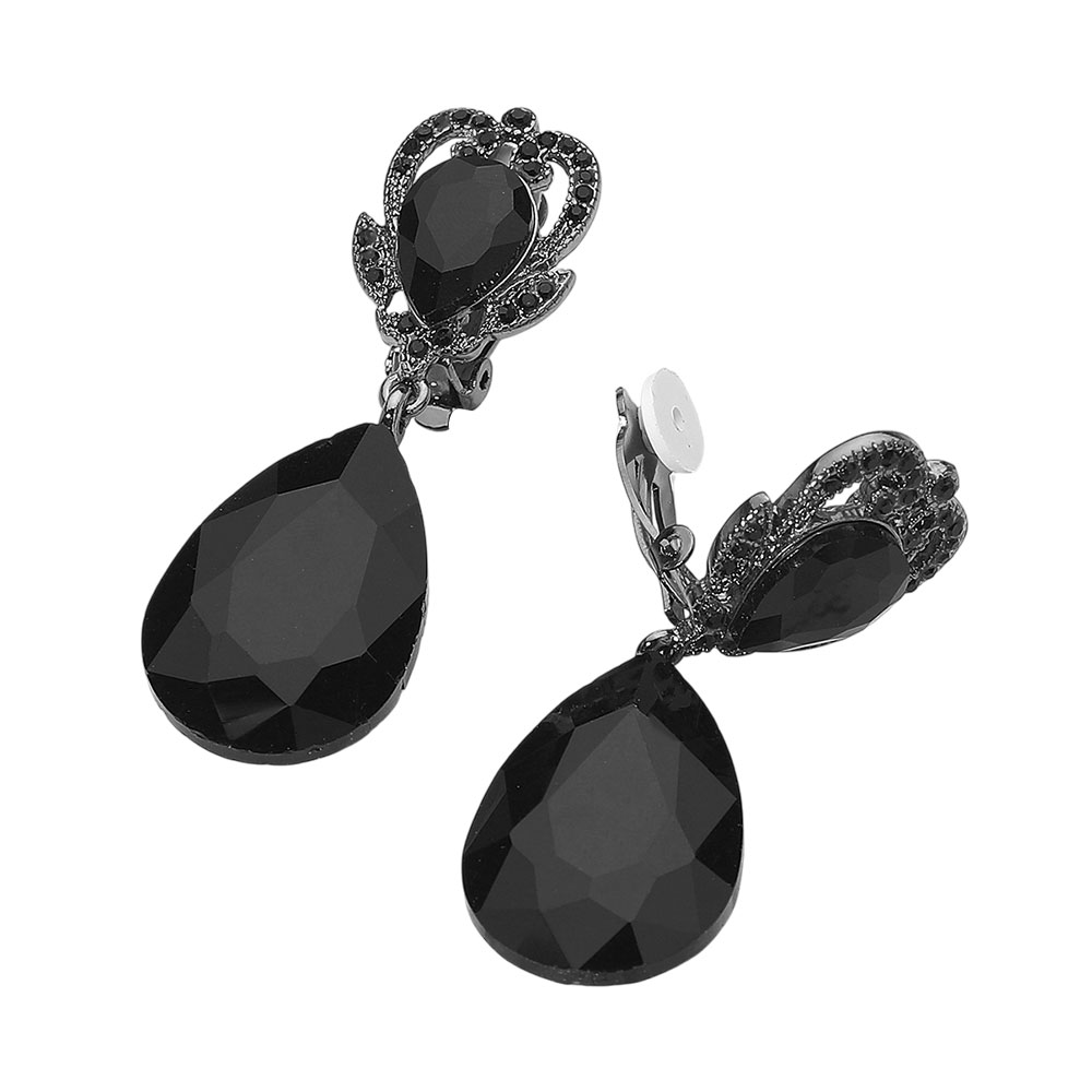 Ornate Top Faceted Teardrop Stone Dangle Clip On Evening Earrings