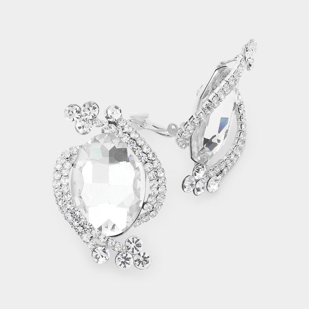 Teardrop Round Stone Embellished Heart Dangle Earrings