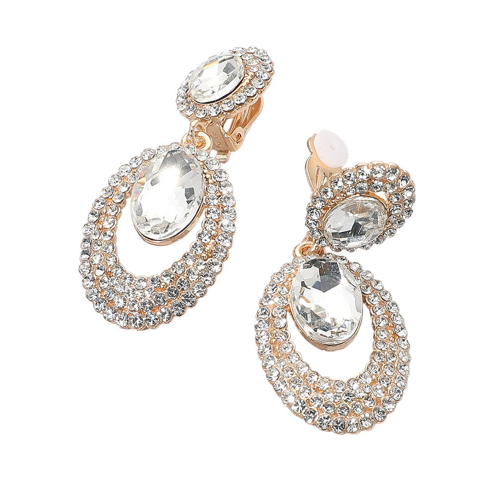 Oval Halo Drop Evening Clip On Earrings