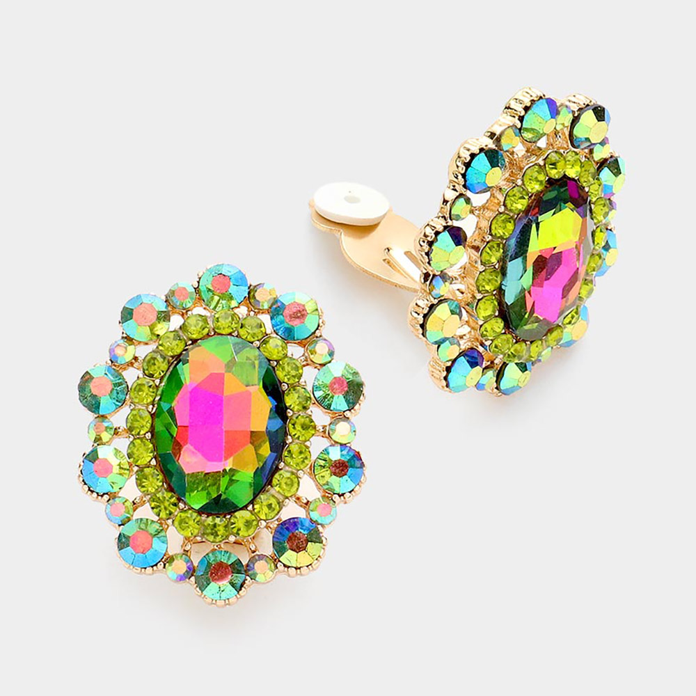 Rhinestone Trim Teardrop Stone Dangle Evening Earrings