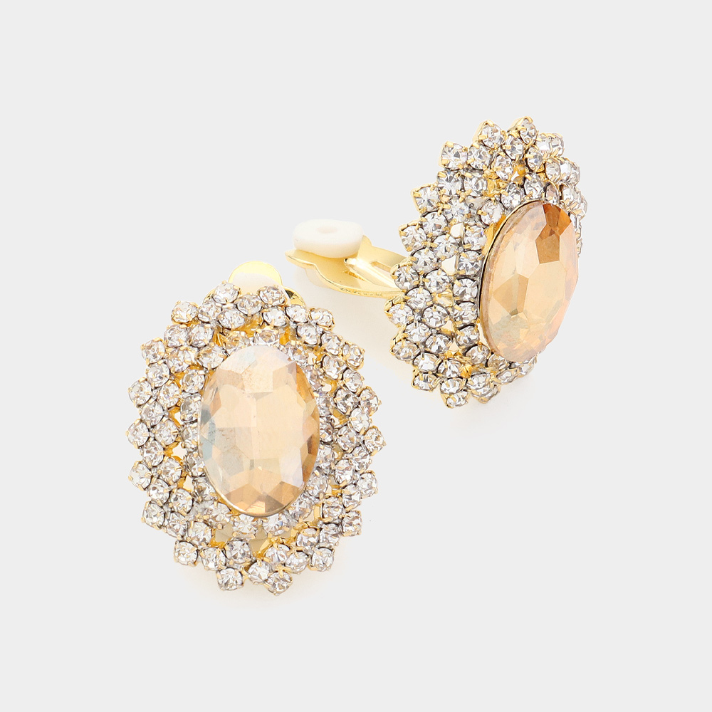 Oval Stone Pointed Evening Clip On Earrings
