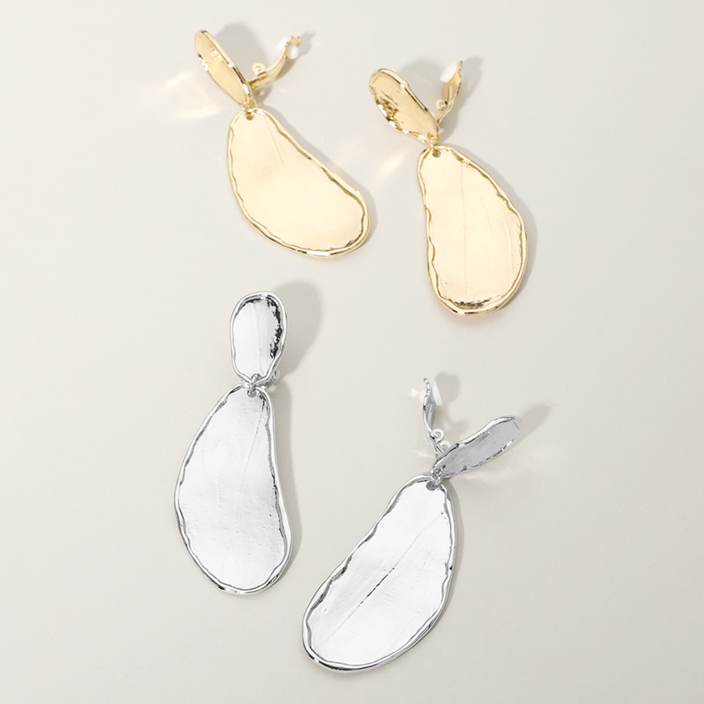 Details • Size : 1.1" X 3" • Clip On • Add artistic flair to your look with these abstract dangle clip-on earrings, featuring an organic sculpted shape that brings a bold, contemporary statement to any outfit. Lightweight, comfortable, and easy to wear without piercings, they’re perfect for chic everyday style or standout occasions. • Lead and Nickel Compliant
