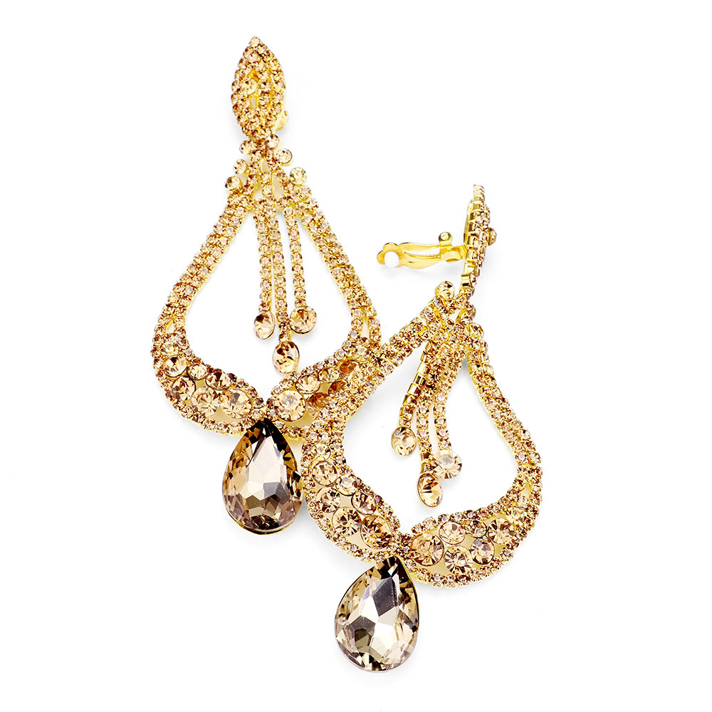 Oversized Pave Glass Teardrop Chandelier Evening Earrings