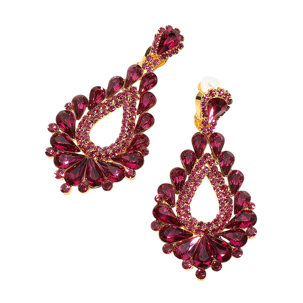 Oversized Pave Glass Teardrop Chandelier Evening Earrings