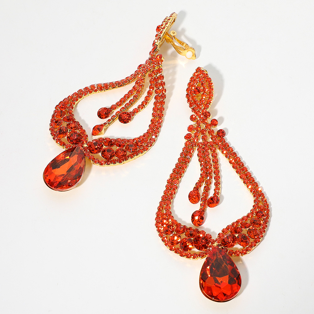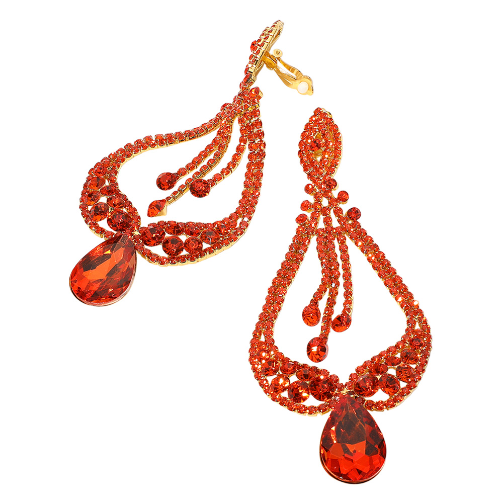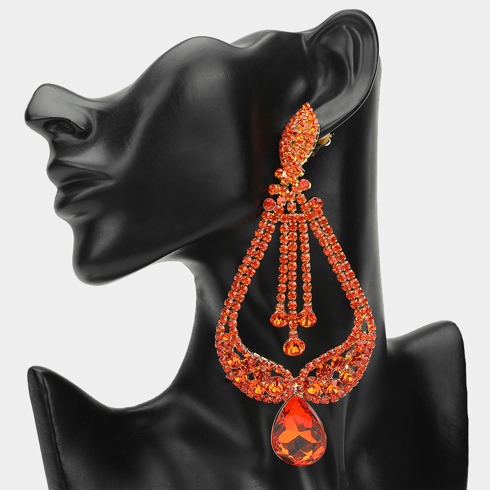 Oversized Pave Glass Teardrop Chandelier Evening Earrings