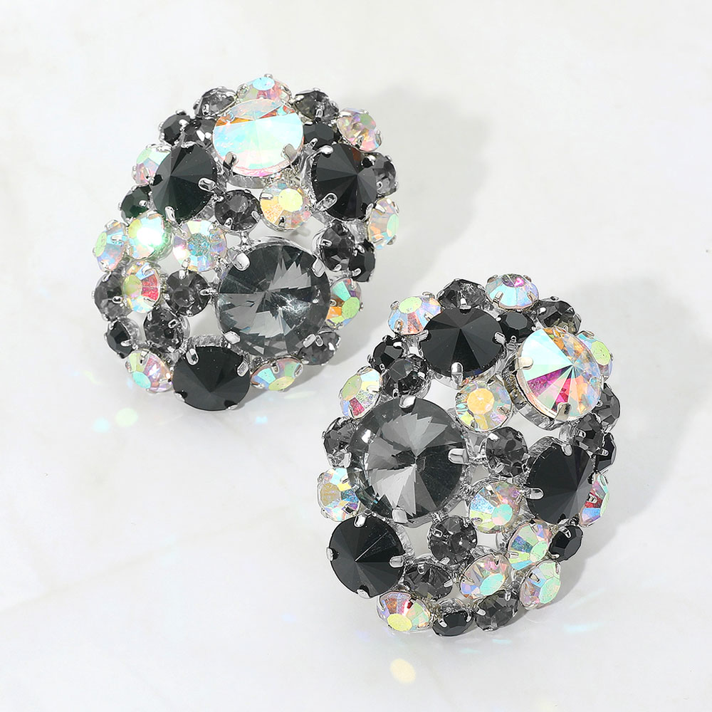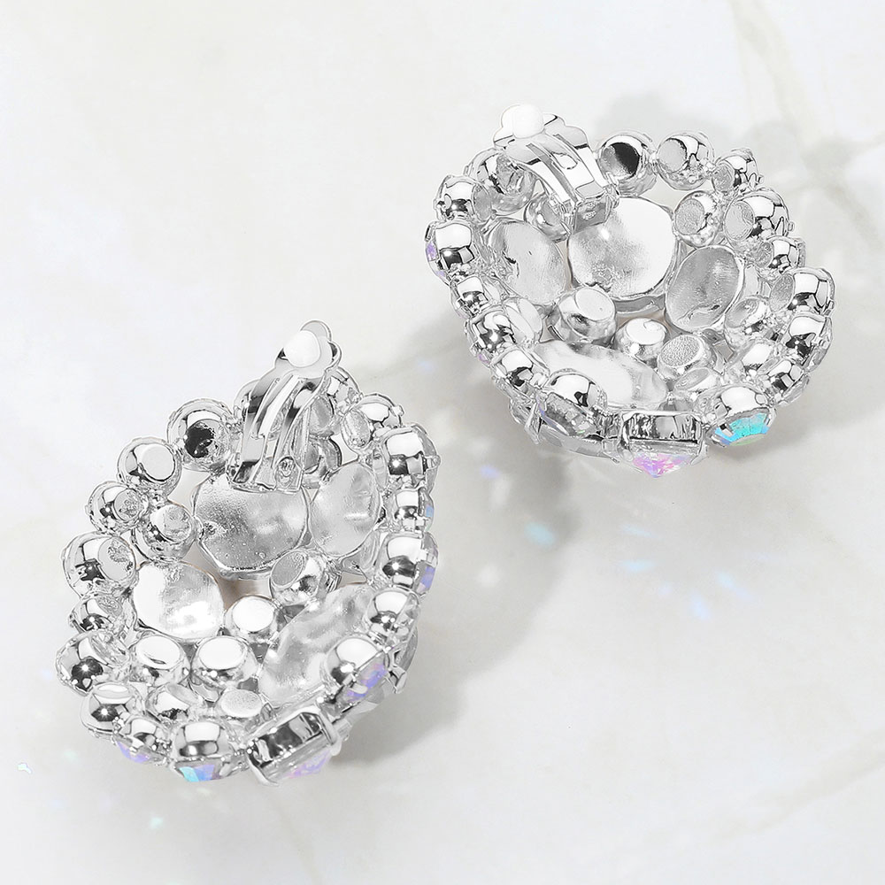 Oversized Rhinestone Cluster Evening Clip On Earrings