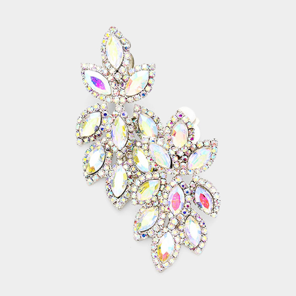 Pave Trim Crystal Rhinestone Oval Clustered Clip On Earrings