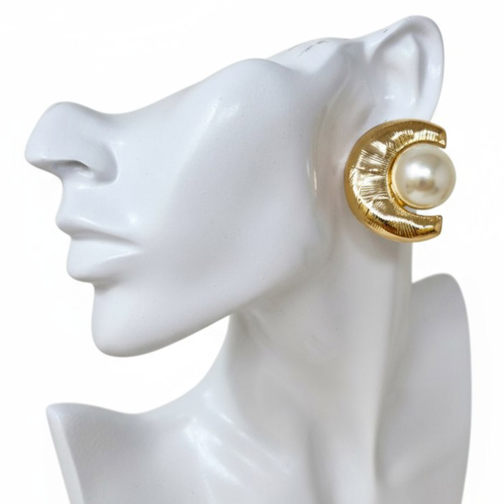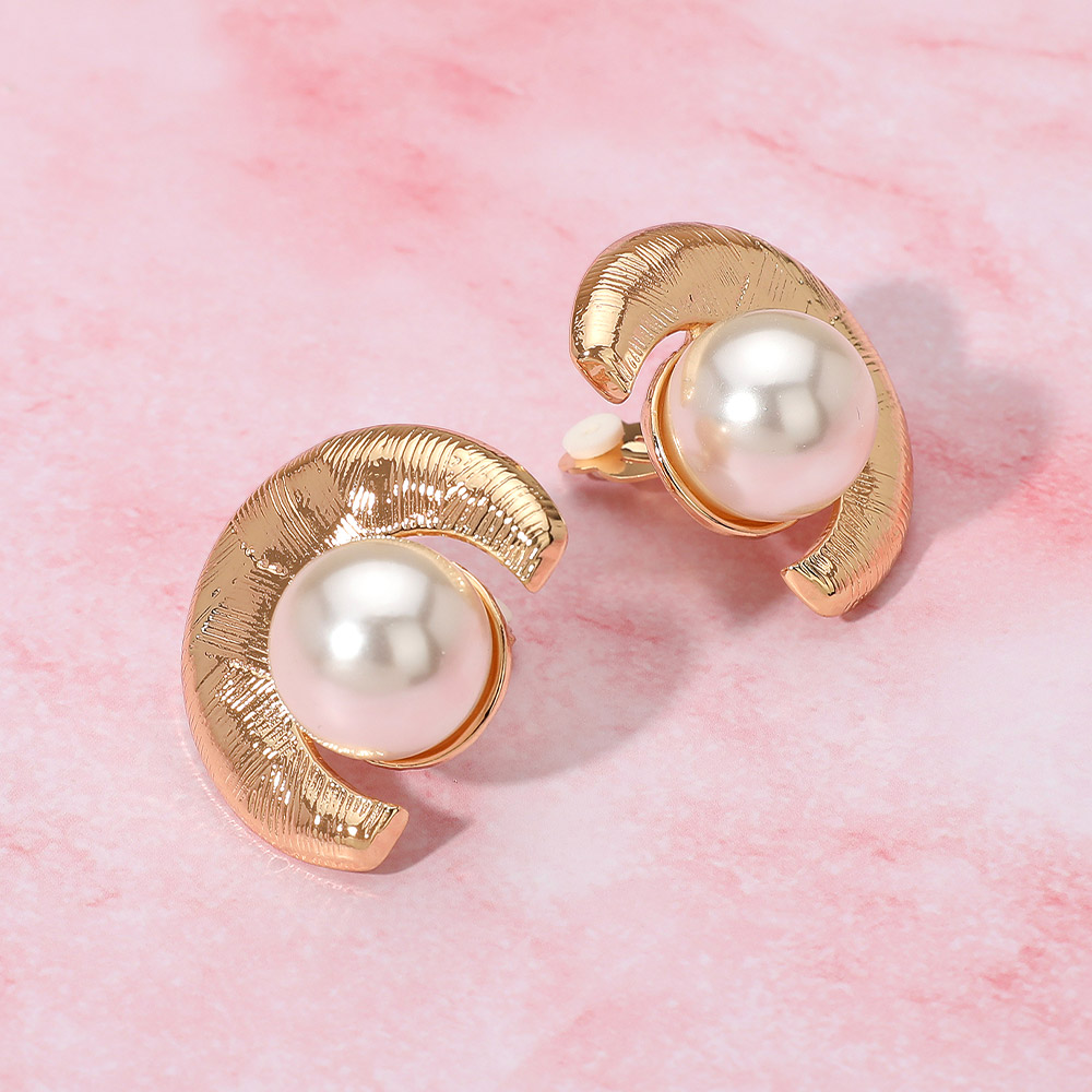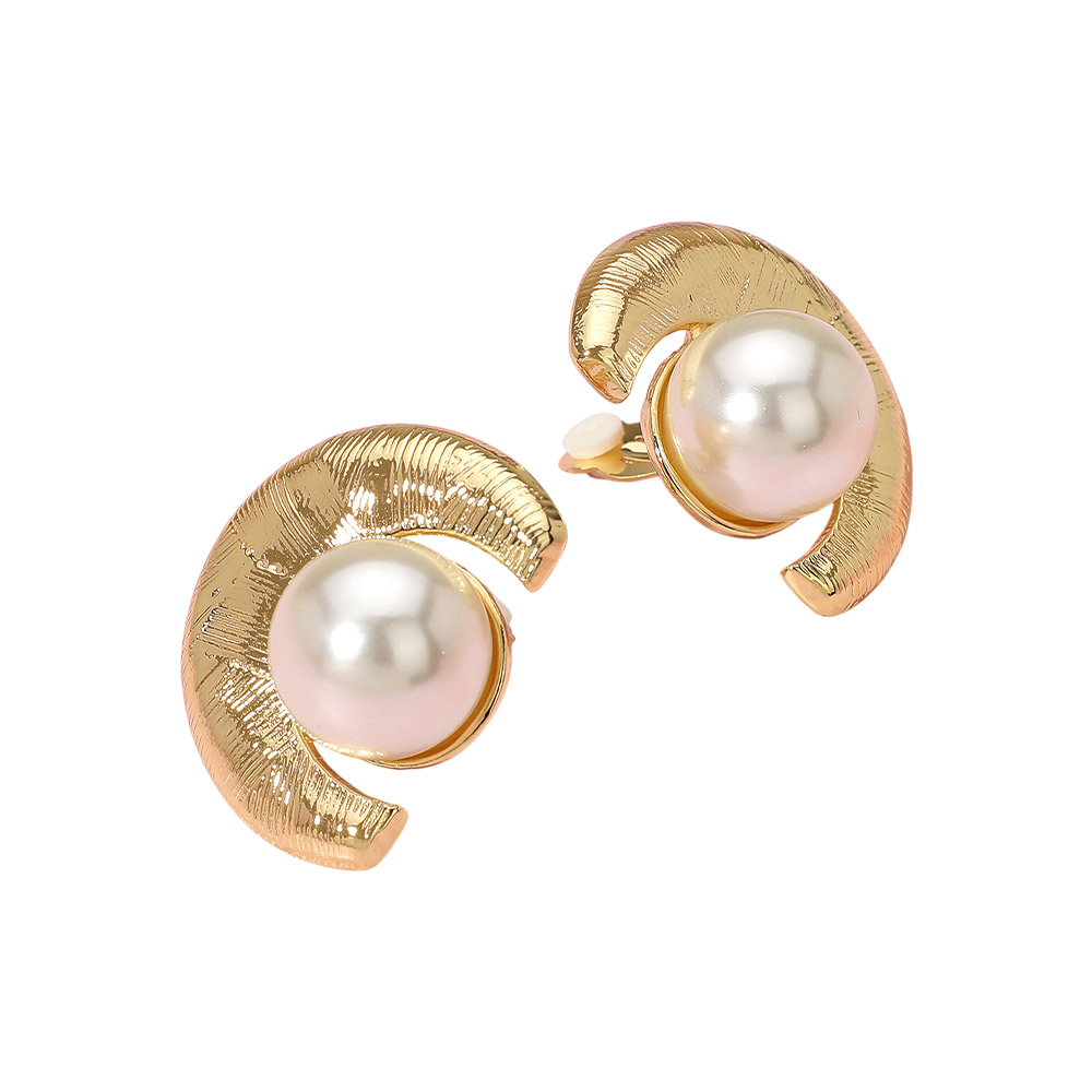 Pearl Accent Textured Curved Metal Clip On Earrings Pearl Accent Textured Curved Metal Clip On Earrings Pearl Accent Textured Curved Metal Clip On Earrings