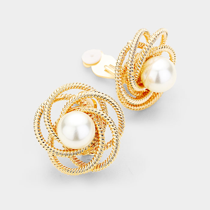 Marquise Pearl Pointed Rhinestone Paved Fringe Dangle Earrings