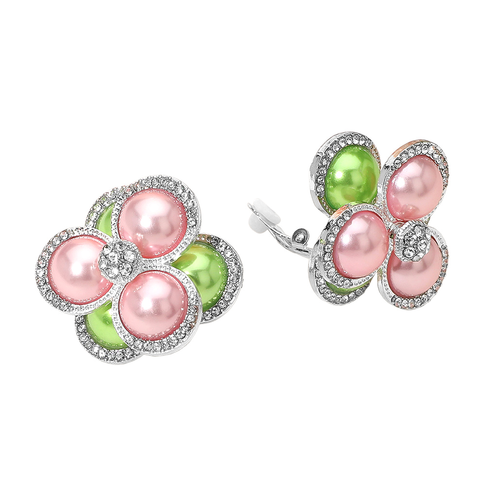 Details • Size : 1.25" X 1.25" • Clip On • Chic pearl cluster flower clip-on earrings designed with glossy petals and sparkling crystal accents. A stylish and comfortable accessory that brings an elegant touch to any outfit, perfect for both everyday wear and special occasions without the need for pierced ears. • Lead and Nickel Compliant