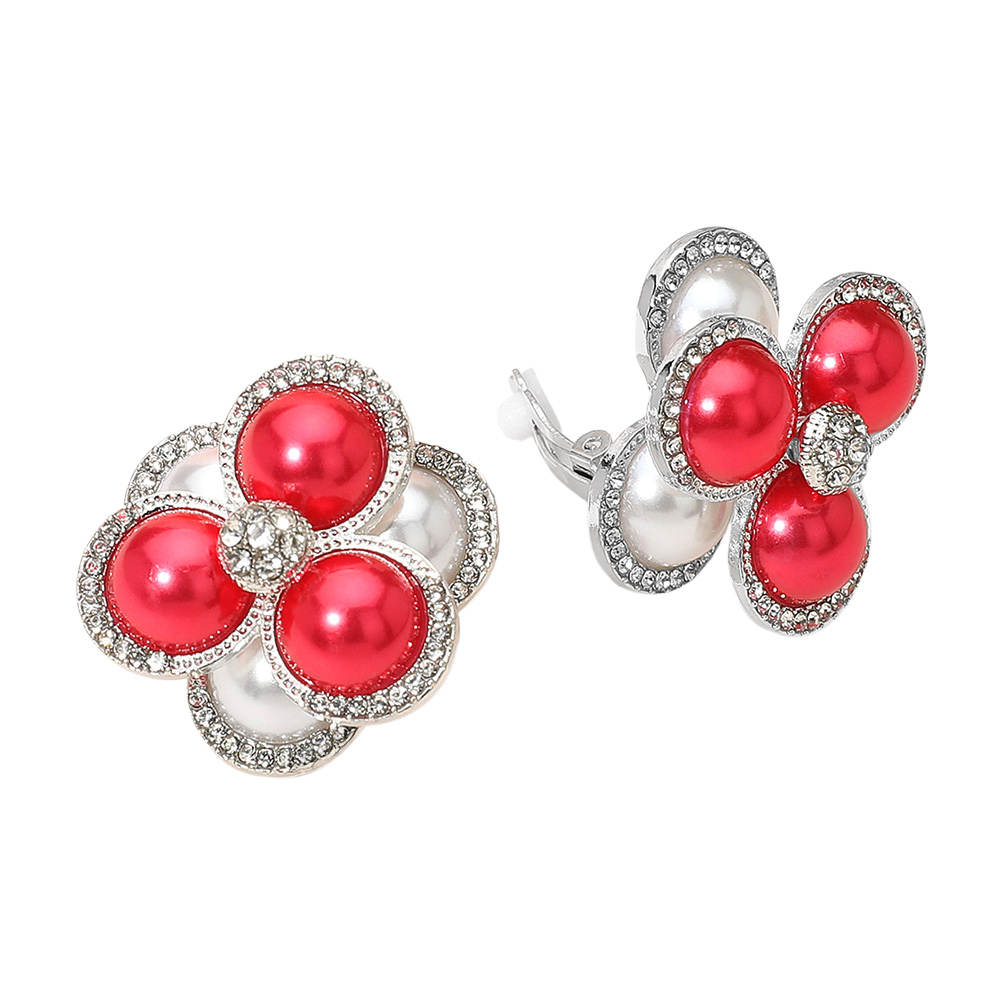 • Chic pearl cluster flower clip-on earrings designed with glossy petals and sparkling crystal accents. A stylish and comfortable accessory that brings an elegant touch to any outfit, perfect for both everyday wear and special occasions without the need for pierced ears.