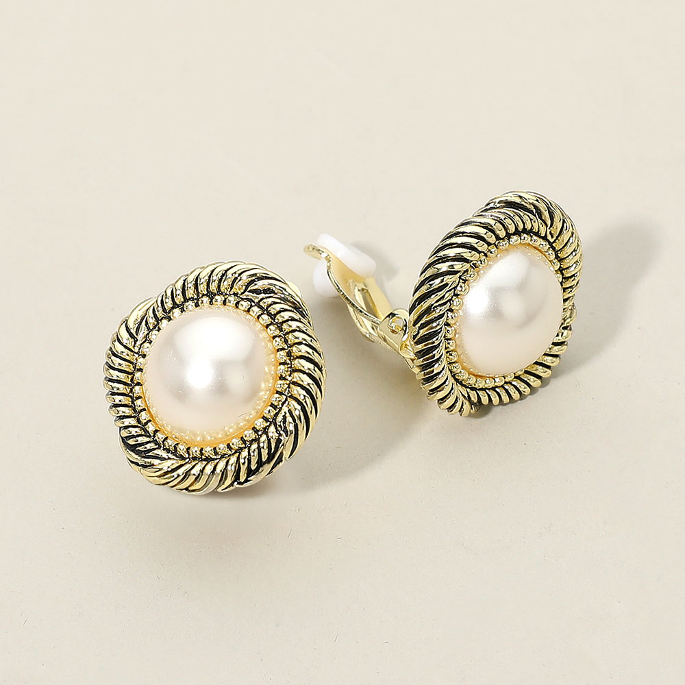 • Timeless clip-on stud earrings featuring a round center framed by a textured border for a refined, vintage-inspired look. Designed for easy, comfortable wear without piercings, they pair effortlessly with everyday outfits or polished occasion styles.