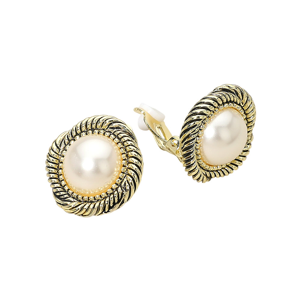 Metal Trim Pearl Clip On Earrings Metal Trim Pearl Clip On Earrings
