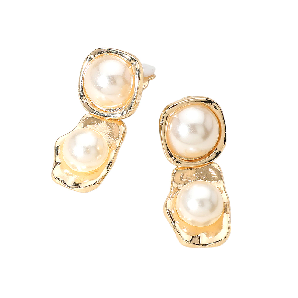 Details • Size : 0.7" X 1.6" • Clip On • Modern clip-on earrings featuring a stacked double-round silhouette with smooth, reflective accents. Designed for non-pierced ears, this bold yet refined style adds dimension and elegance to both casual and dressy looks, making it a versatile choice for everyday wear, events, and special occasions. • Lead and Nickel Compliant