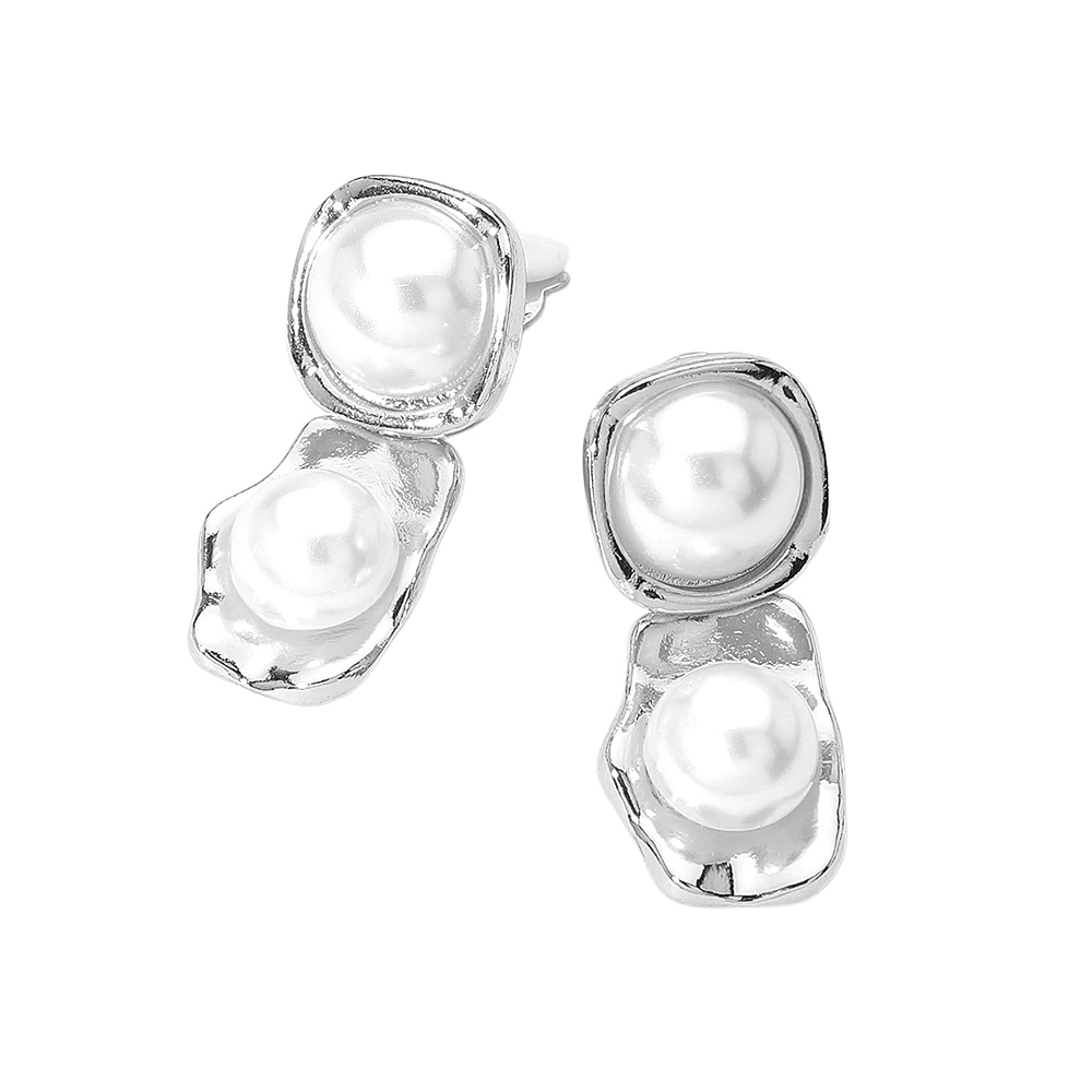Details • Size : 0.7" X 1.6" • Clip On • Modern clip-on earrings featuring a stacked double-round silhouette with smooth, reflective accents. Designed for non-pierced ears, this bold yet refined style adds dimension and elegance to both casual and dressy looks, making it a versatile choice for everyday wear, events, and special occasions. • Lead and Nickel Compliant