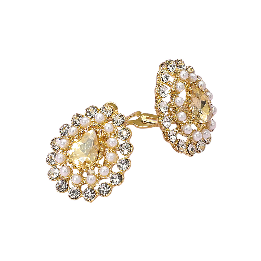 Pearl Rhinestone Teardrop Clip On Earrings