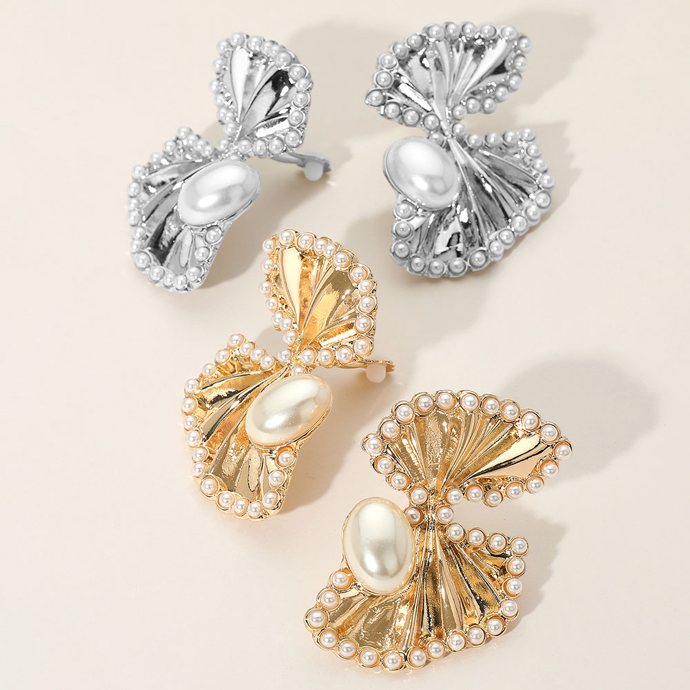 6Pairs - Elegant Bow Pearl Hoop Earring Set