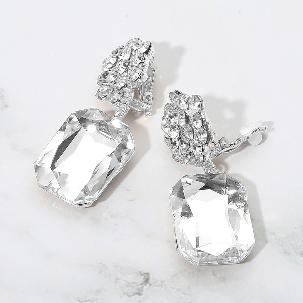 Rectangle Cluster Dangle Flower Top Evening Clip On Earrings