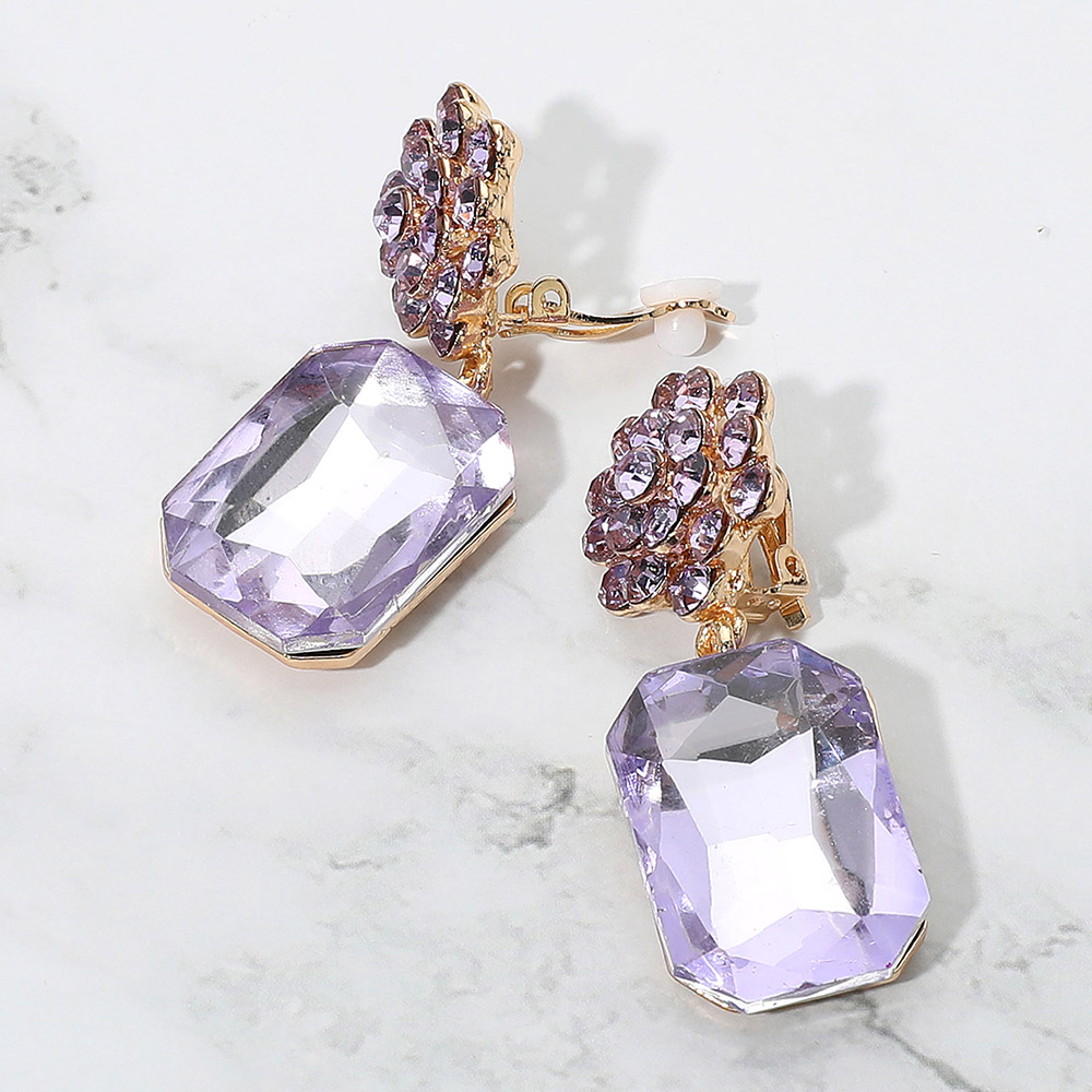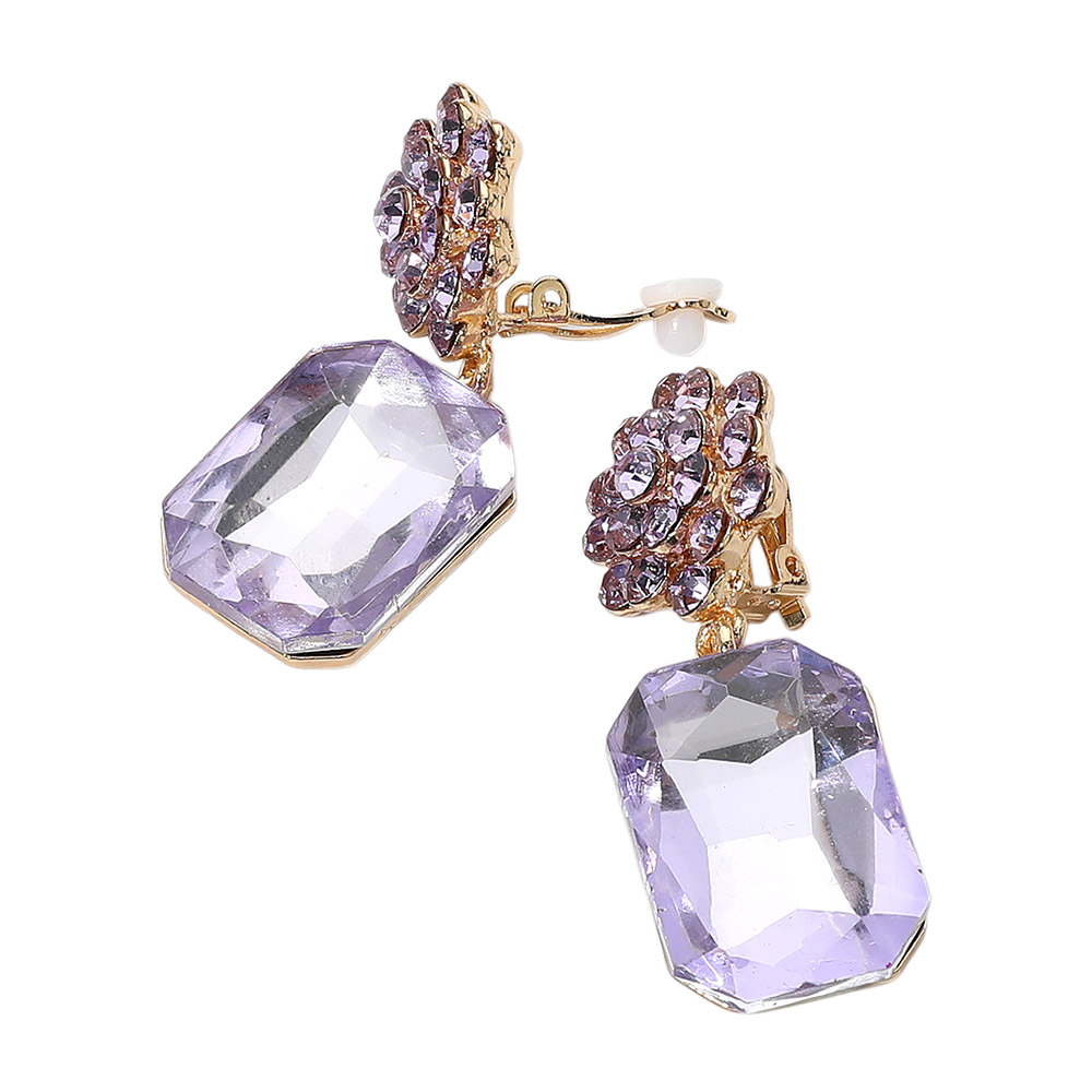 Details • Size : 0.75" X 2" • Clip On • Bold and elegant, these clip-on statement earrings feature a large faceted gemstone drop paired with a dazzling floral cluster top. Designed for a secure, non-pierced fit, perfect for adding glamour to any look. • Lead and Nickel Compliant